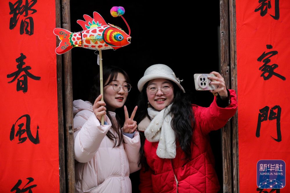 2月7日,游客在瞻淇村中游玩。