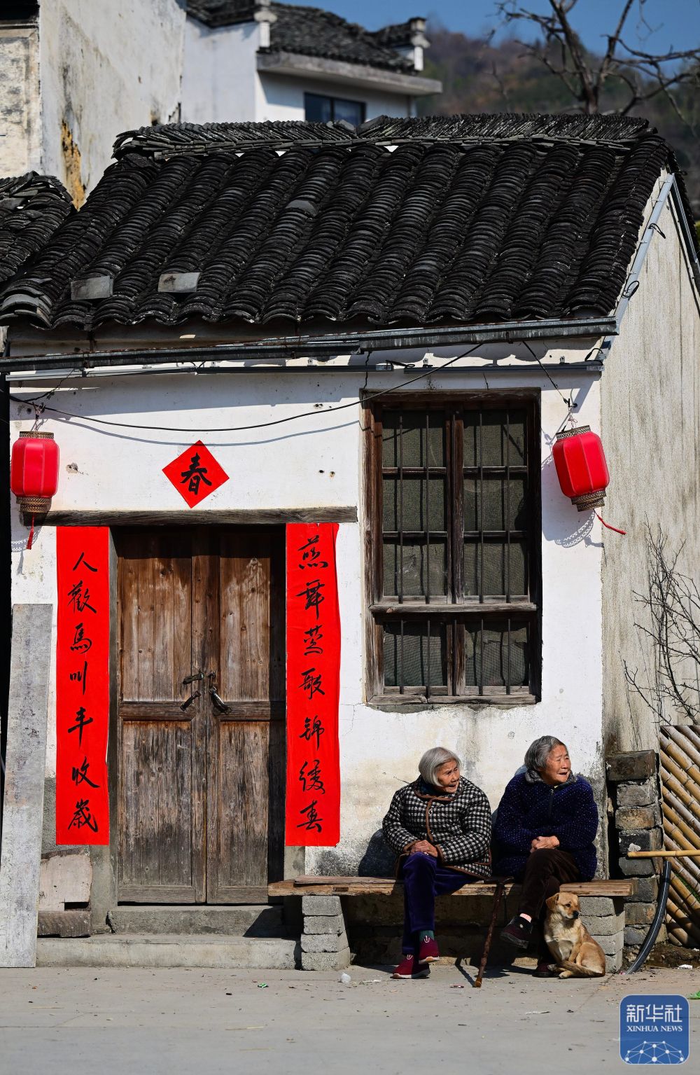 2月8日,村民在瞻淇村曬太陽(yáng)。