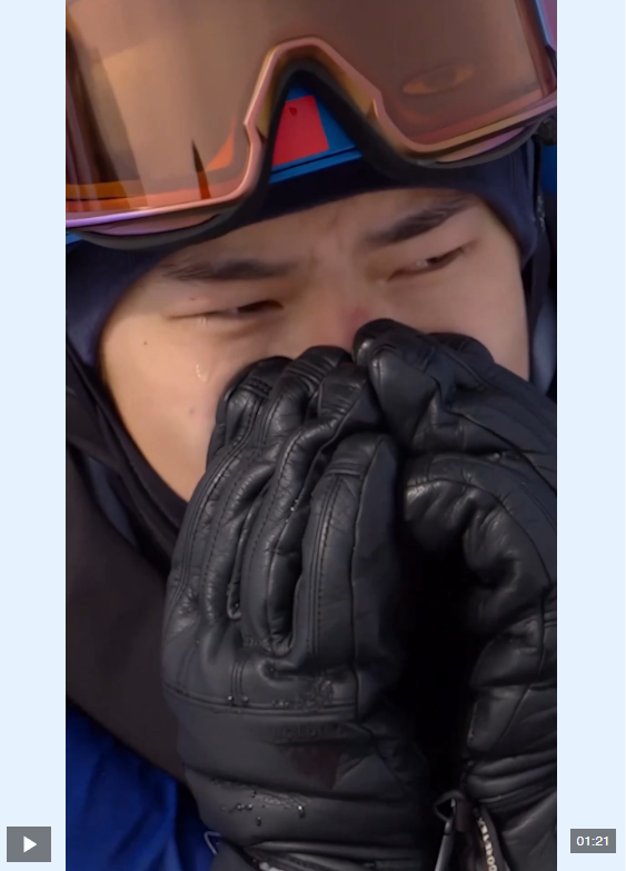 完賽后,蘇翊鳴難掩熱淚?!皬谋本┒瑠W會(huì)后的休息,再回到世界最高水平,對(duì)我來(lái)說(shuō)是一個(gè)艱難的過(guò)程?!彼哪觊g,蘇翊鳴經(jīng)歷了傷病、挫折、低谷,他的腳踝曾一度腫脹到穿不上雪鞋,甚至不能行走,繼續(xù)訓(xùn)練和比賽全靠止疼藥支撐。但在一度幾乎崩潰,幾乎要放棄的時(shí)候,他堅(jiān)持下來(lái)了,就在他22歲生日當(dāng)天,蘇翊鳴再次站上奧林匹克之巔,在國(guó)際賽場(chǎng)展現(xiàn)出了中國(guó)冰雪人的魅力。