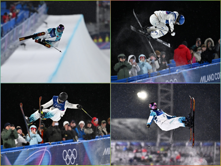 圖為李方慧(左上)、谷愛凌(右上)、張可欣(左下)、劉奕杉(右下)在比賽中。