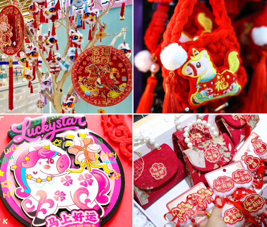 義烏國(guó)際商貿(mào)城年味兒滿滿,年畫(huà)、燈籠、馬年玩偶,還有各式各樣的創(chuàng)意潮玩年貨,鋪天蓋地的“中國(guó)紅”,熱熱鬧鬧。