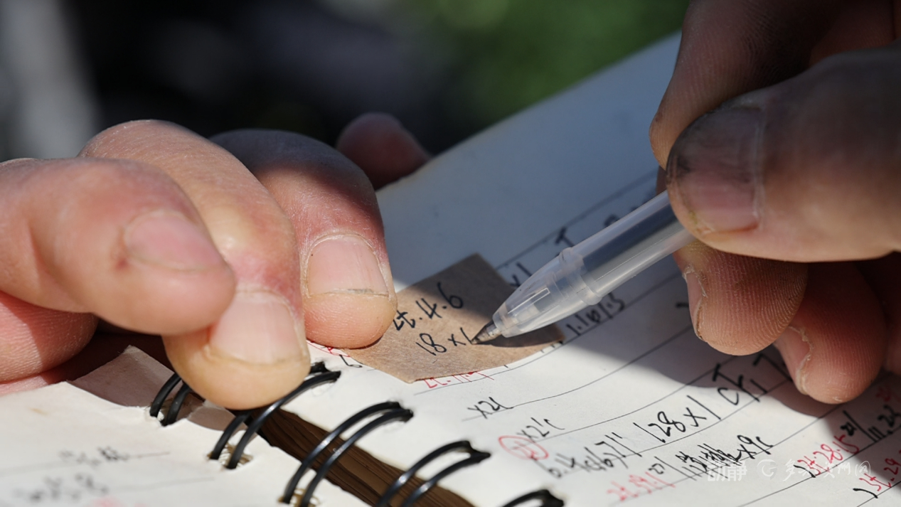 夜晚,當(dāng)田間工作暫歇,駐地的燈光又亮起?!爱?dāng)天采的果,我們一般都是晚上把它調(diào)查完,能更好地精準(zhǔn)定位組配的品種是什么性狀的,怎么來制定育種目標(biāo),今天要是不干完心里就慌慌的?!睏罴t說。測量、記錄、分析……這些數(shù)據(jù)又關(guān)乎著下一個良種的誕生。