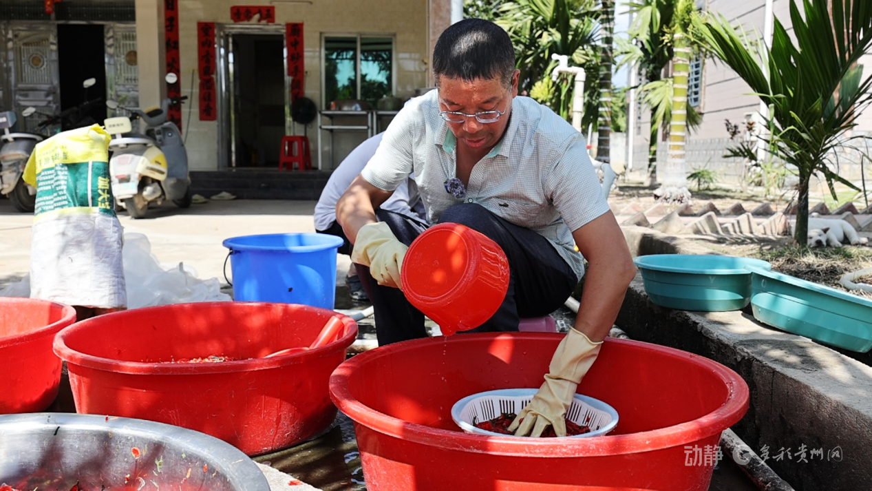 貴州省農(nóng)科院辣椒研究所“黔辣”育種團隊成員劉崇政正在分離采收的辣椒種
