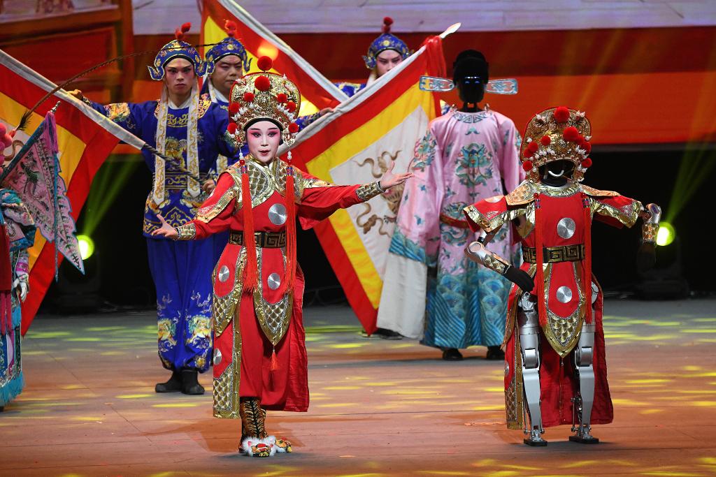 活動期間,一場“人機共舞”的演出線上直播觀看突破10萬人次。機器人“旺來”藝術團融合廈金宋江陣、布袋木偶戲等非遺,與真人武者過招、變化陣型。