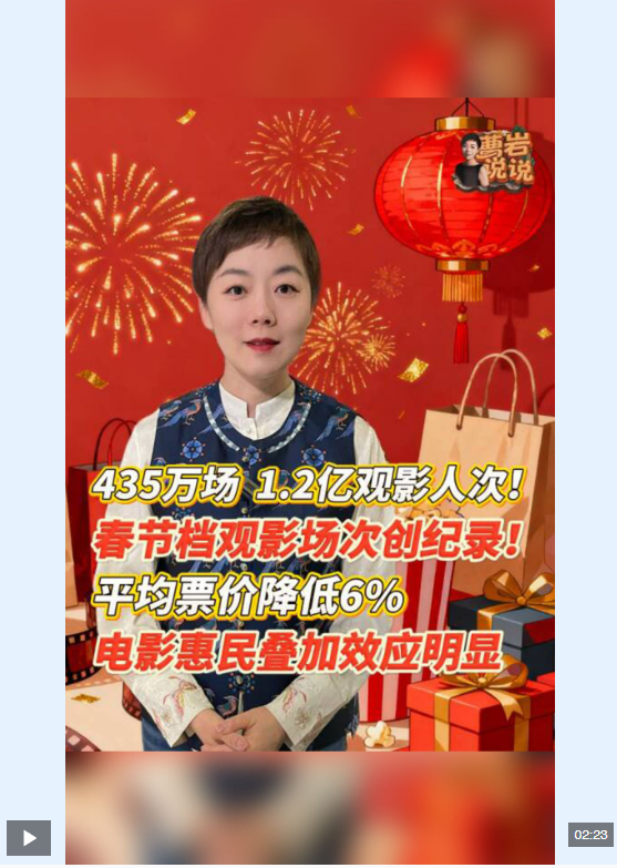 視頻丨435萬場,春節(jié)檔觀影場次創(chuàng)紀(jì)錄,票價更惠民!