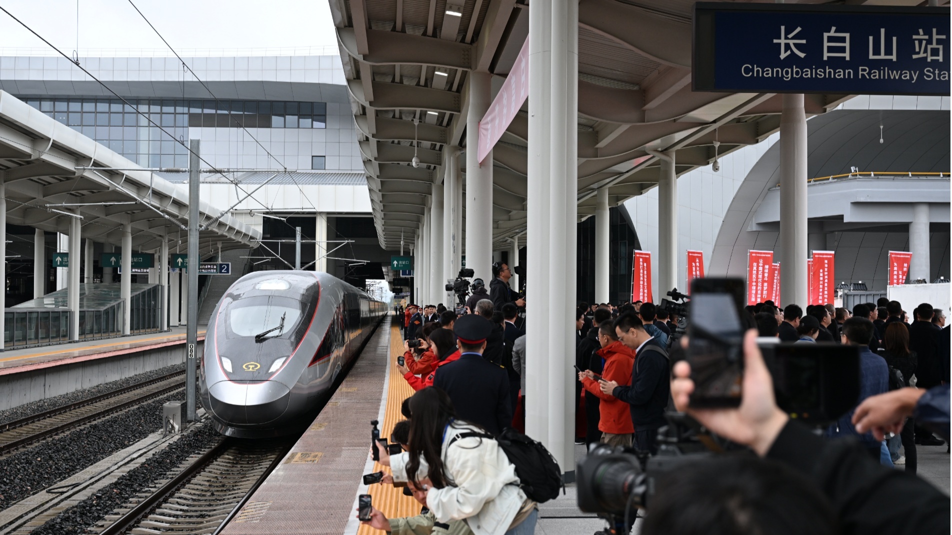 2025年9月28日,沈白高鐵正式開(kāi)通運(yùn)營(yíng)。12時(shí)許,G8134次列車(chē)平穩(wěn)駛?cè)虢礀|站,白山市正式邁入“高鐵時(shí)代”。