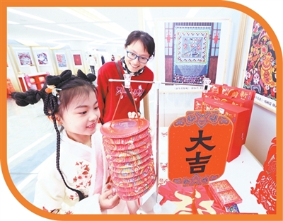 小朋友在北京奧運(yùn)博物館新春系列活動上觀賞燈籠。