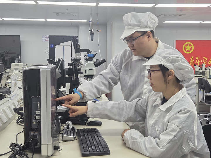 2月24日,春節(jié)假期后首個工作日。8時,江蘇金陵機(jī)械制造總廠的超凈間里,無影燈準(zhǔn)時亮起。33歲的首席技師張雯集換上防靜電服,快步走向工作臺。這是他每天開啟“微米級挑戰(zhàn)”的固定場景。屏息凝神,手中的鍵合劈刀精準(zhǔn)起落。幾秒后,一個誤差僅0.003毫米的“蝶形焊點”成型。