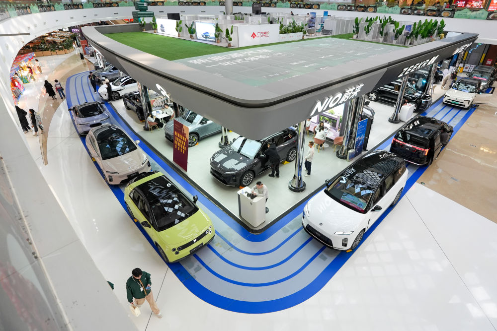 在北京市朝陽區(qū)一個(gè)商場內(nèi),市民在了解新能源汽車(2026年2月11日攝)。