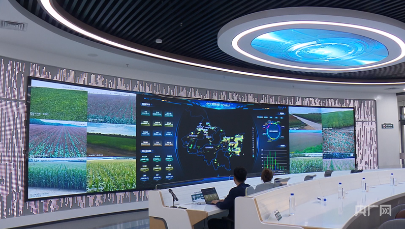 在北大荒信息公司的智慧農(nóng)業(yè)大數(shù)據(jù)中心,數(shù)據(jù)庫(kù)集合了北大荒4800多萬(wàn)畝耕地80年來(lái)的種植數(shù)據(jù),工作人員通過(guò)操作智慧大屏展示了黑土地智慧農(nóng)業(yè)“未來(lái)”的模樣。