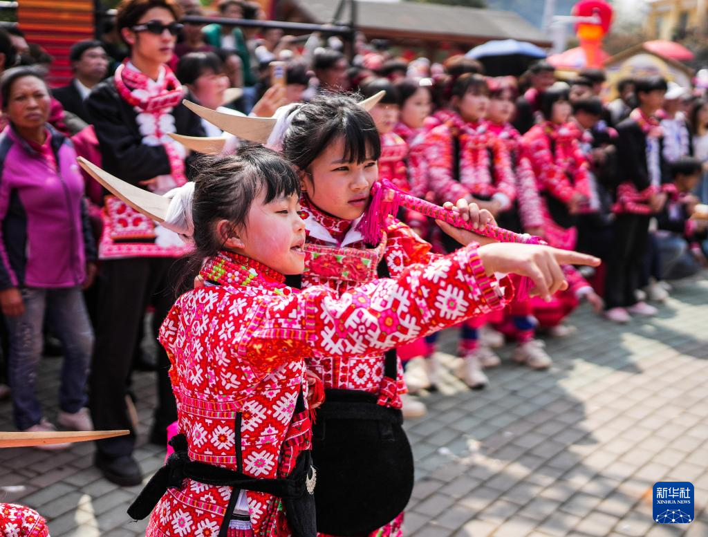 2月26日,在貴州省六盤水市六枝特區(qū)梭戛苗族彝族回族鄉(xiāng)高興村跳花場,苗族群眾在表演舞蹈。