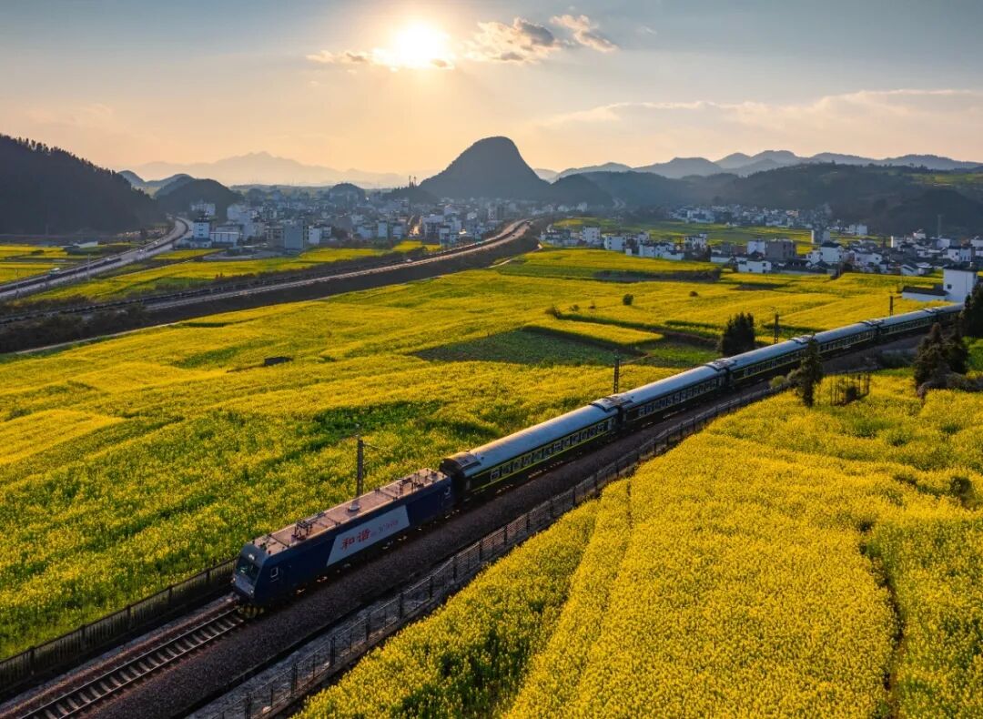 南昆鐵路的春運(yùn)旅途,被羅平的油菜花海溫柔包圍。暖陽下,列車如游龍穿梭在無邊金浪里,花潮隨春風(fēng)起伏,暈染出層層柔光。遠(yuǎn)山含黛,村落隱在花影間,花香混著歸鄉(xiāng)的期盼,讓每一段歸途都盛滿春日的浪漫與溫暖。