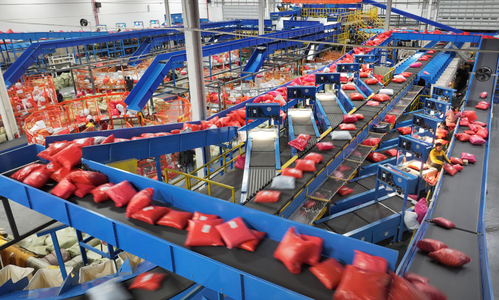 在江蘇南通一家國際物流園分揀中心,工作人員在分揀貨物(2023年12月20日攝,無人機照片)?!笆奈濉逼陂g,面對地緣政治風險和貿(mào)易壁壘,我國以跨境電商、保稅維修、市場采購等為代表的新業(yè)態(tài)新模式助力各國消費者、生產(chǎn)者“買全球、賣全球”,成為穩(wěn)外貿(mào)的重要引擎。
