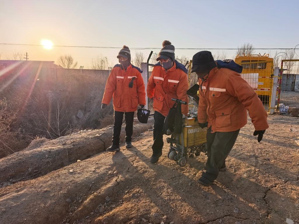 戴上口罩、帽子,隊(duì)員們把自己裹得嚴(yán)嚴(yán)實(shí)實(shí)。早晨七點(diǎn)半,隊(duì)員們合力將重達(dá)50余公斤的探傷儀抬上作業(yè)車,向著柳村南一場(chǎng)駛?cè)?。戶外的風(fēng)迎面撲來,臉被刮得生疼,手指難展,可班長(zhǎng)霍智慧卻說:“最近天氣回暖,今天這天氣算好的了。”
