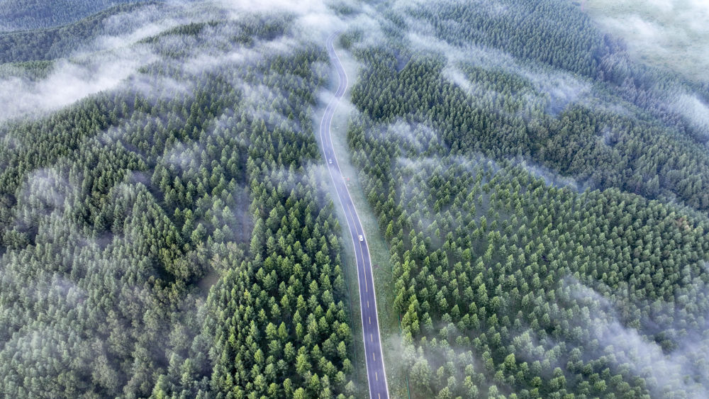 2024年7月26日拍攝的塞罕壩國家級自然保護(hù)區(qū)景色(無人機(jī)照片)。夏日清晨,位于河北省承德市的塞罕壩國家級自然保護(hù)區(qū)滿目青翠,浩瀚林海壯美如畫。新華社發(fā)(王立群 攝)