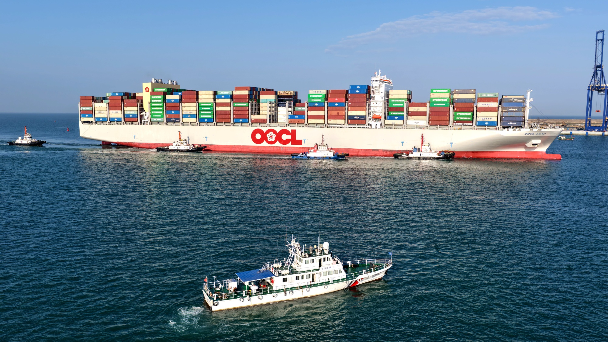 大型集裝箱船舶駛進(jìn)洋浦港(央廣網(wǎng)發(fā) 洋浦海事局供圖)