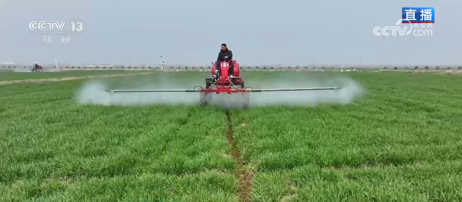 此時此刻,在麥田里,自走式植保機正在作業(yè),今年的植保機加裝了北斗導航無人駕駛輔助系統(tǒng),機器可以實現(xiàn)無人化操作。只要提前設(shè)定參數(shù),機器就能夠完成自動轉(zhuǎn)彎、停車、噴灑等等作業(yè)流程,節(jié)約了人手,提高了效率。不僅僅是地面上,稍遠處的空中,無人機飛防作業(yè)正在另一片麥地的上空進行,它們正在為麥田播撒葉面肥。
