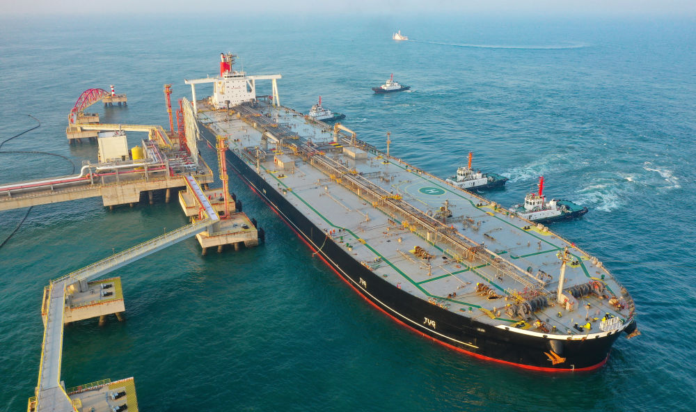 2025年12月18日,一艘裝載著石化原輔料的外籍船舶泊入位于海南省儋州市的國(guó)投洋浦油儲(chǔ)碼頭30萬(wàn)噸級(jí)原油泊位(無(wú)人機(jī)照片)。當(dāng)日,海南自由貿(mào)易港正式啟動(dòng)全島封關(guān)。新華社記者 郭程 攝