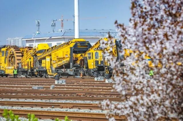 春風(fēng)拂過(guò)鋼軌,繁花映照著中國(guó)鐵路西安局集團(tuán)有限公司工務(wù)機(jī)械段的大型養(yǎng)路機(jī)械。這些“鋼鐵衛(wèi)士”整裝待發(fā),在春日暖陽(yáng)中守護(hù)線路安全,讓每一趟列車都能馳騁在最美的春天。
