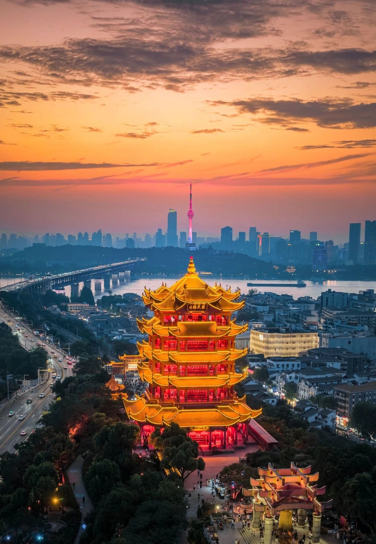 四百多年后,全國(guó)各地?cái)?shù)萬(wàn)名游客相聚于武漢龜山公園,在他們的鏡頭里,龜蛇兩山的新綠漫上山巔,長(zhǎng)江大橋的鋼索牽著流云,黃鶴樓的飛檐挑著粉櫻。