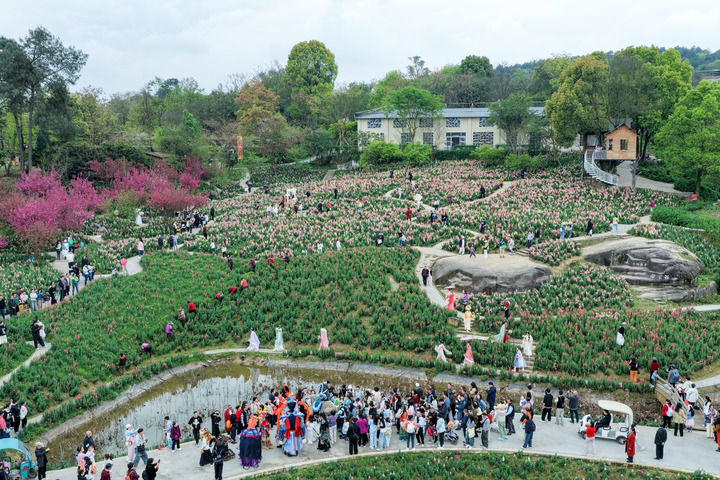 2026年3月22日,游客在重慶市巴南區(qū)二圣鎮(zhèn)集體村云林天鄉(xiāng)景區(qū)踏青游玩(無人機(jī)照片)。近年來,重慶市巴南區(qū)二圣鎮(zhèn)集體村依托云林天鄉(xiāng)景區(qū),發(fā)展都市休閑觀光農(nóng)業(yè),深入推進(jìn)農(nóng)文旅深度融合發(fā)展,通過打造油菜花、金魚草等不同品種的四季高山花海主題景區(qū),實現(xiàn)從過去苗木基地“賣苗木”到鄉(xiāng)村旅游“賣景觀”的轉(zhuǎn)變,帶動村民增收致富。新華社記者 黃偉 攝