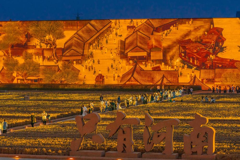 白天,這面夯土墻是可觸摸的黃河文明地標;入夜,它便化作巨幅畫卷,一幅《清明上河圖》在激光投影中徐徐展開。
