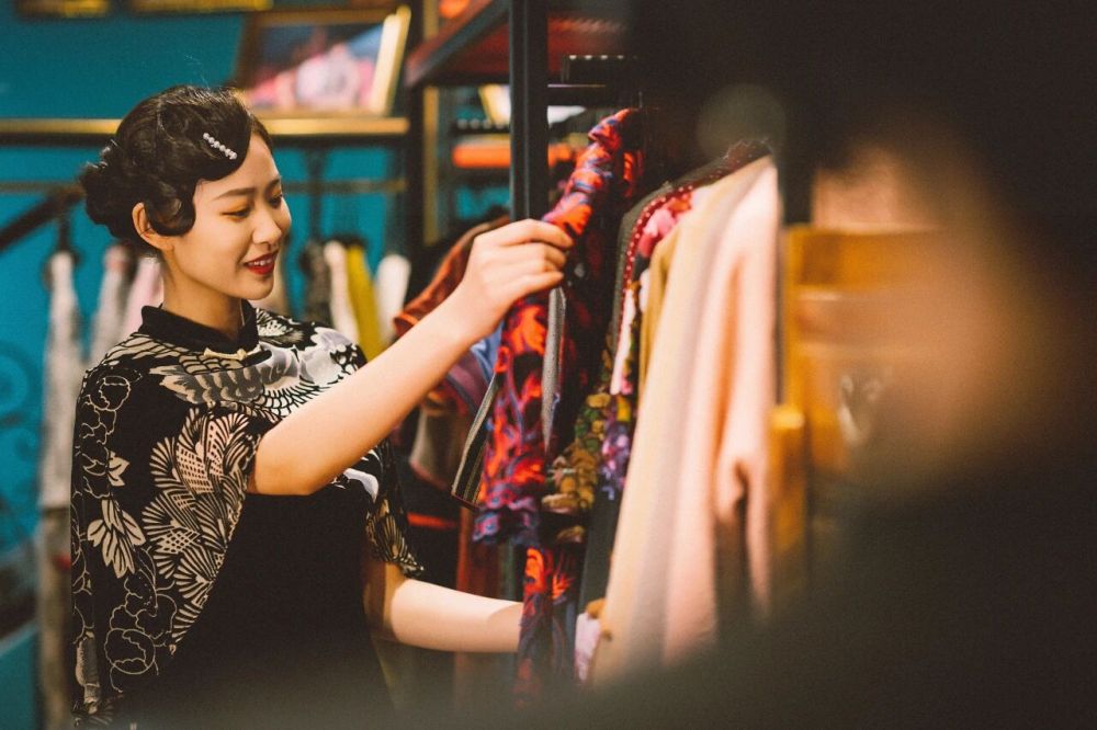 鄭州中牟,游客在建業(yè)電影小鎮(zhèn)挑選旗袍。新華社發(fā)