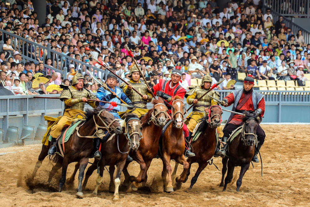 下午時分,清明上河園內(nèi)人潮涌動,大型實景演出《岳飛槍挑小梁王》即將開演?,F(xiàn)場座無虛席,戰(zhàn)馬嘶鳴、金戈交擊,喝彩聲此起彼伏,八百年前的忠義與熱血仿佛就在眼前。