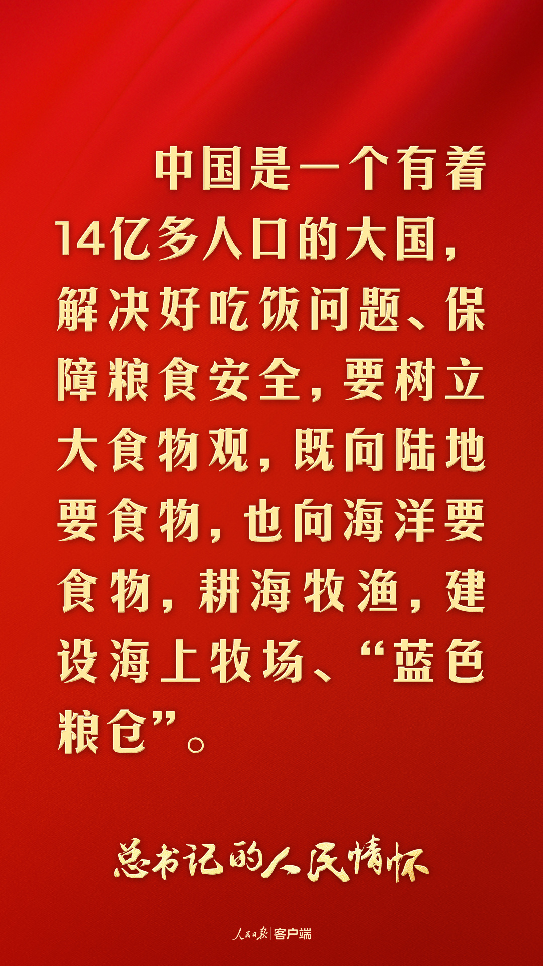 向江河湖海要食物。到廣東東海島上看海水養(yǎng)殖,習(xí)近平總書記強(qiáng)調(diào):“提高我們國(guó)民的身體素質(zhì),把水產(chǎn)搞上去,把蛋白質(zhì)搞上去很重要?!?/p>