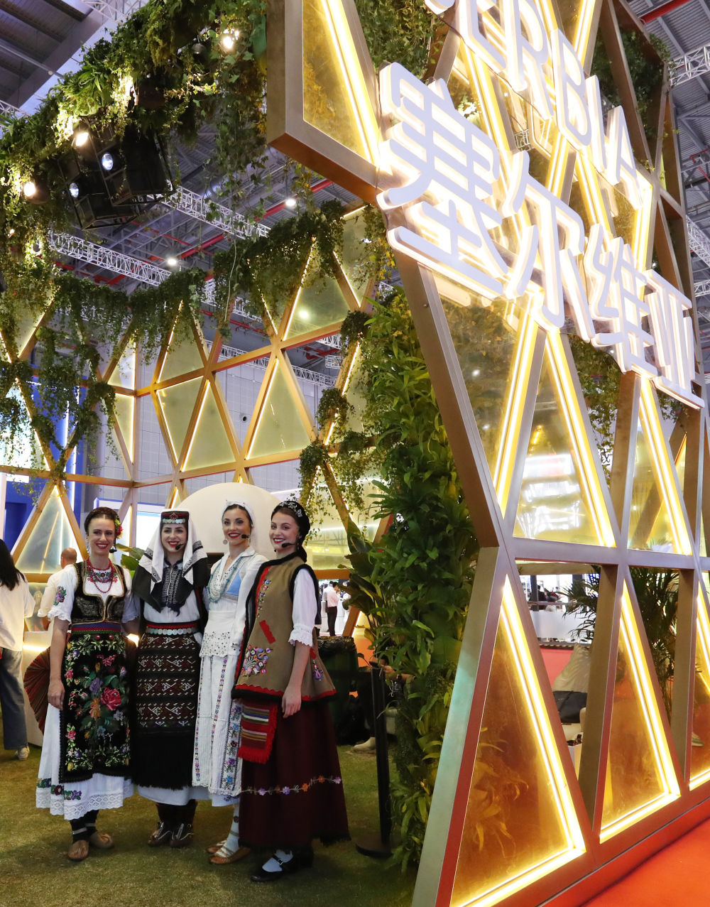 2023年11月6日,身著傳統(tǒng)服飾的演職人員在上海進(jìn)博會(huì)國家展塞爾維亞展臺(tái)迎接參觀者。第六屆進(jìn)博會(huì)國家展全面恢復(fù)線下舉辦,洪都拉斯、塞爾維亞、越南、南非、哈薩克斯坦作為本屆進(jìn)博會(huì)主賓國在國家展亮相。新華社記者 方喆 攝