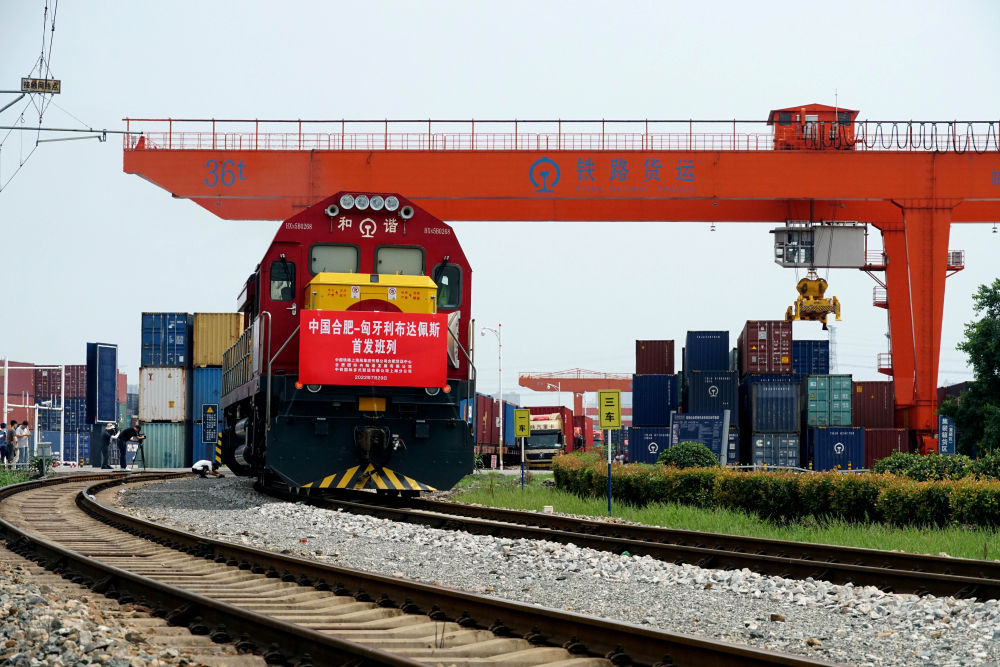 2022年7月29日,合肥至匈牙利布達(dá)佩斯的中歐班列從合肥北站物流基地駛出,標(biāo)志著合肥中歐班列通往匈牙利布達(dá)佩斯的線路正式開通。新華社發(fā)(席靜玉攝)