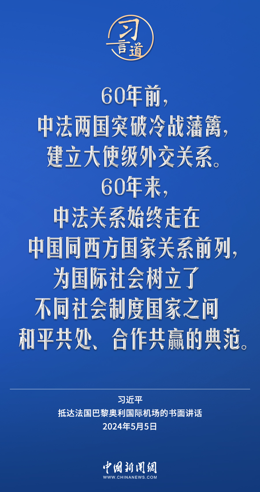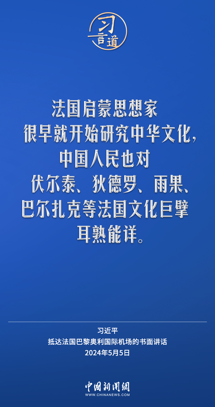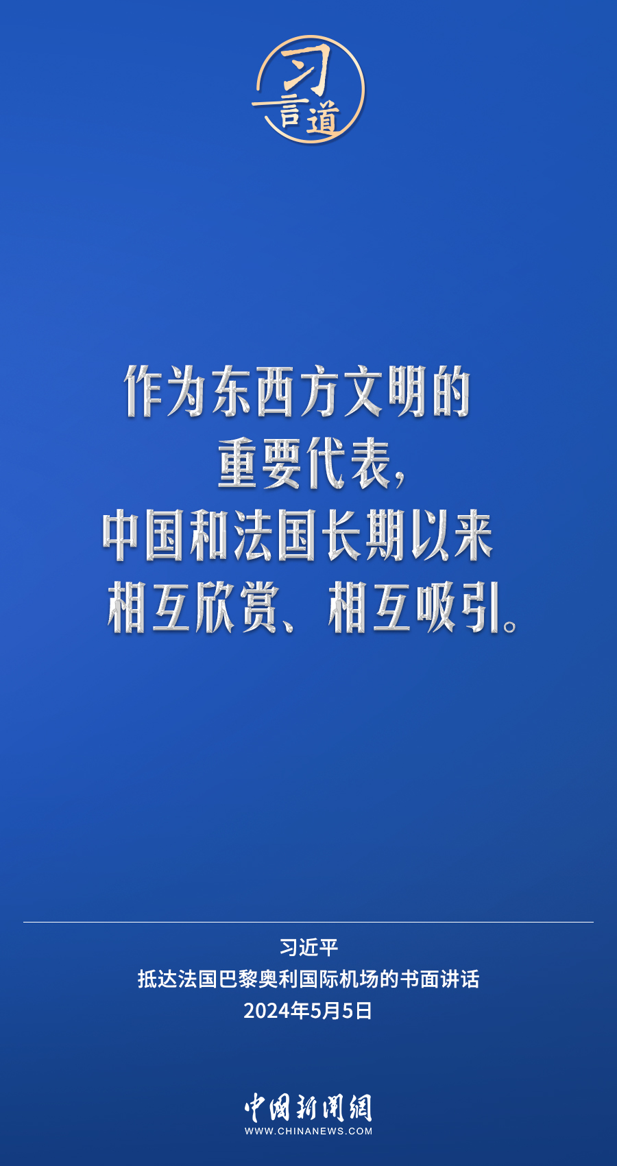 當(dāng)?shù)貢r間5月5日下午,國家主席習(xí)近平抵達(dá)巴黎,開始對法國進(jìn)行國事訪問。在抵達(dá)法國巴黎奧利國際機(jī)場的書面講話中,習(xí)近平指出——