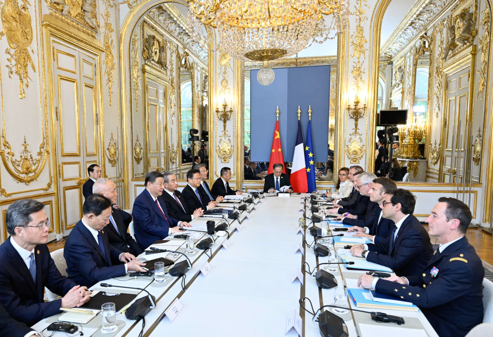 習(xí)近平指出,很高興在中法建交60周年之際對(duì)法國(guó)進(jìn)行第三次國(guó)事訪問(wèn)。中法關(guān)系60年珍貴歷程,將使我們更好思考如何開啟下一個(gè)60年。在當(dāng)前世界百年變局下,雙方應(yīng)該堅(jiān)守獨(dú)立自主、相互理解、高瞻遠(yuǎn)矚、互利共贏的建交初心,并為其注入新的時(shí)代內(nèi)涵,打造新時(shí)期互信穩(wěn)定、守正創(chuàng)新、擔(dān)當(dāng)作為的中法關(guān)系。雙方要堅(jiān)持獨(dú)立自主,共同防止“新冷戰(zhàn)”或陣營(yíng)對(duì)抗;要堅(jiān)持相互理解,共同促進(jìn)多彩世界的和諧共處;要堅(jiān)持高瞻遠(yuǎn)矚,共同推動(dòng)平等有序的世界多極化;要堅(jiān)持互利共贏,共同反對(duì)“脫鉤斷鏈”。