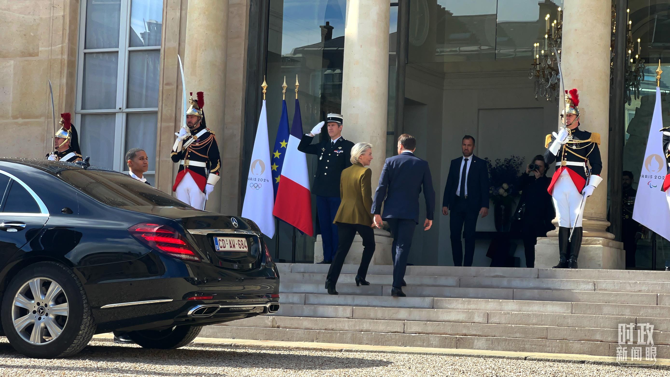 歐盟委員會主席馮德萊恩抵達(dá)愛麗舍宮。(總臺央視記者張洛嘉拍攝)
