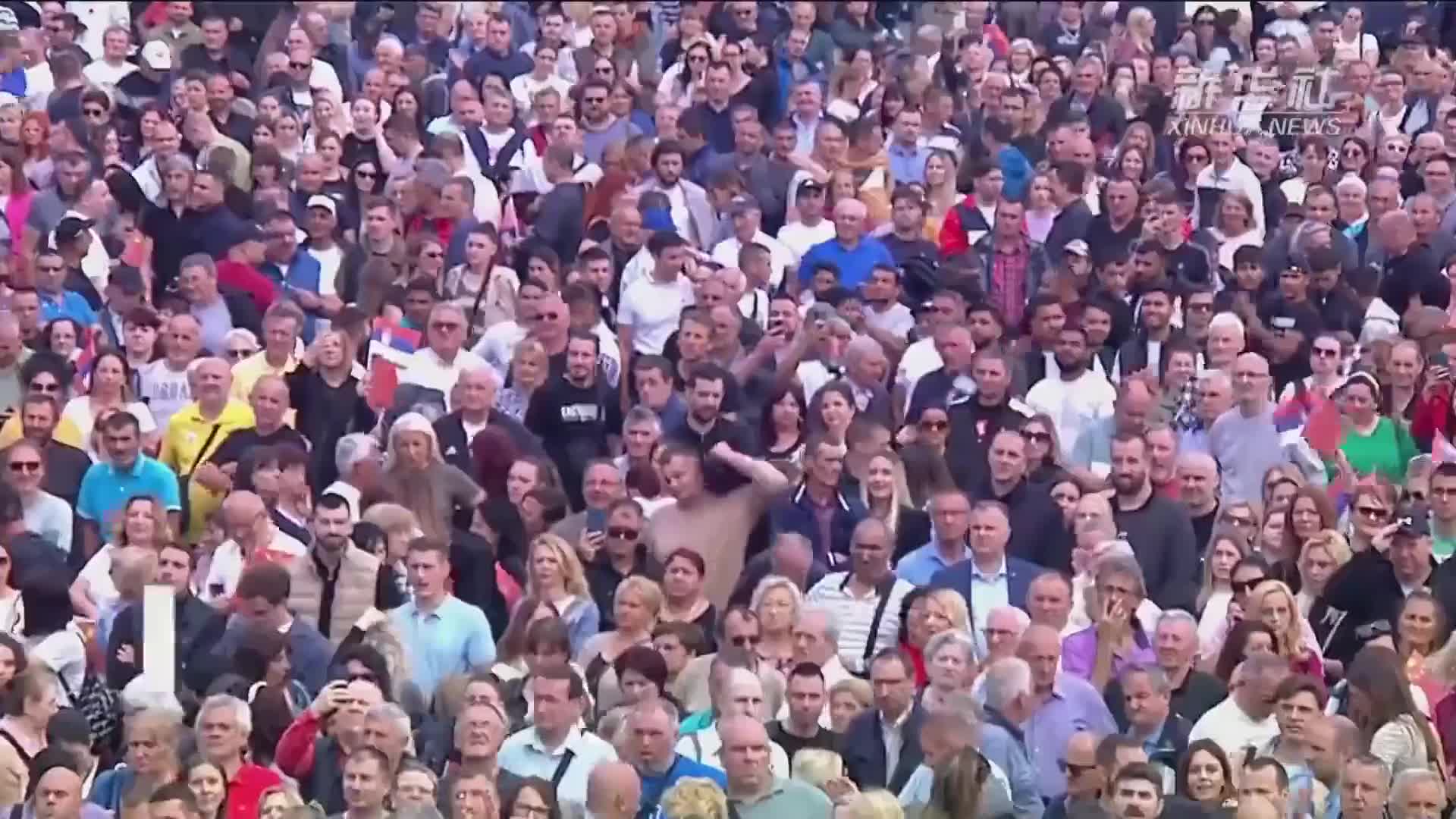 歡迎儀式結(jié)束后,他們穿過塞爾維亞大廈的大廳,走到另一側(cè)大門。大門外的廣場(chǎng),人山人海,無比壯觀。