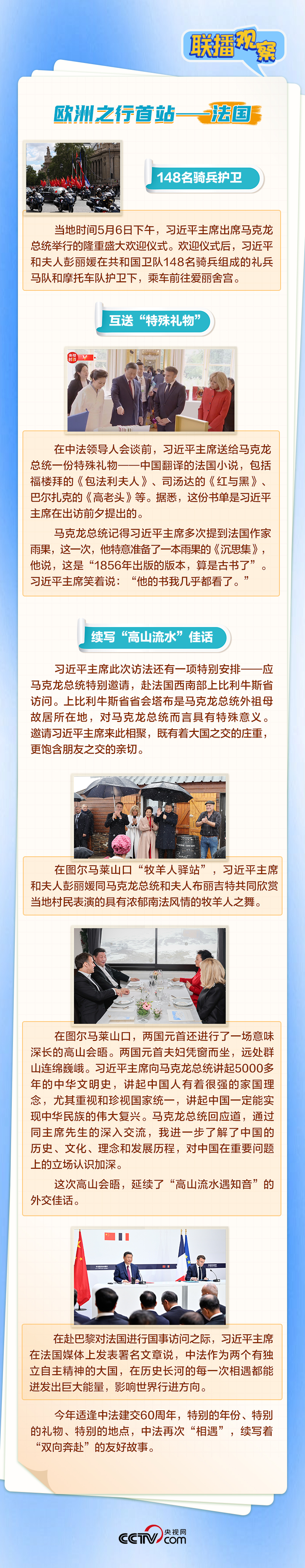 聯(lián)播+5月5日至10日,習(xí)近平主席對法國、塞爾維亞、匈牙利進(jìn)行國事訪問,這是習(xí)近平主席今年首次出訪,也是中國國家元首時隔5年再訪歐洲。