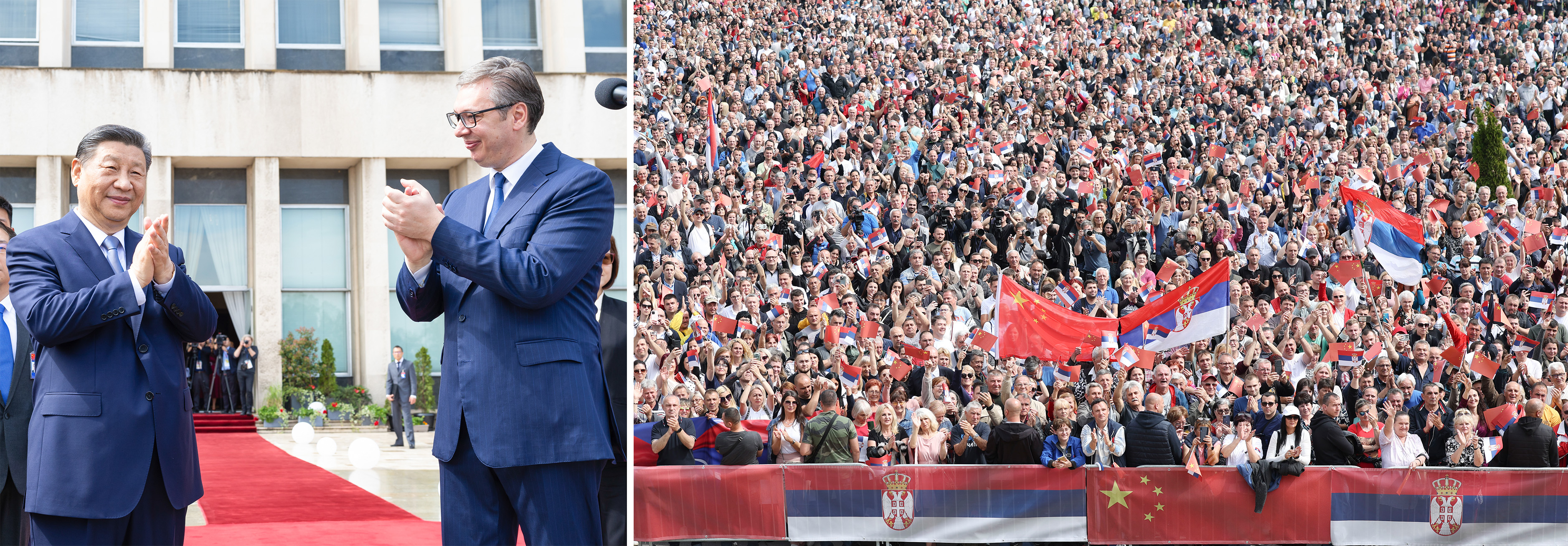 訪問塞爾維亞,習(xí)近平主席宣布中方支持新時(shí)代中塞命運(yùn)共同體建設(shè)的首期6項(xiàng)務(wù)實(shí)舉措。武契奇總統(tǒng)表示,塞方堅(jiān)定支持并將積極參與習(xí)近平主席提出的全球發(fā)展倡議、全球安全倡議、全球文明倡議,同中方密切多邊戰(zhàn)略協(xié)作,共同反對(duì)霸權(quán)強(qiáng)權(quán),維護(hù)聯(lián)合國憲章宗旨,捍衛(wèi)國際公平正義。