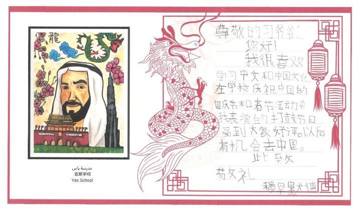 近日,阿聯(lián)酋中文教學(xué)“百校項(xiàng)目”示范校哈姆丹學(xué)校和亞斯學(xué)校40名中小學(xué)生代表分別用中文致信習(xí)近平主席,表達(dá)對(duì)中國(guó)文化的向往和熱愛(ài),立志做中阿友好的使者。習(xí)近平主席在復(fù)信中勉勵(lì)他們學(xué)好中文、了解中國(guó),“把友誼的種子根植在心里,為開(kāi)創(chuàng)中阿關(guān)系更加美好的明天貢獻(xiàn)力量”。