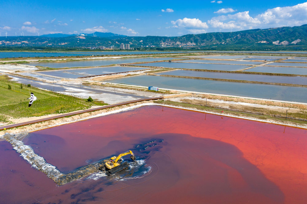 2024年4月30日拍攝的運城鹽湖全面提升改造項目現(xiàn)場(無人機照片)。