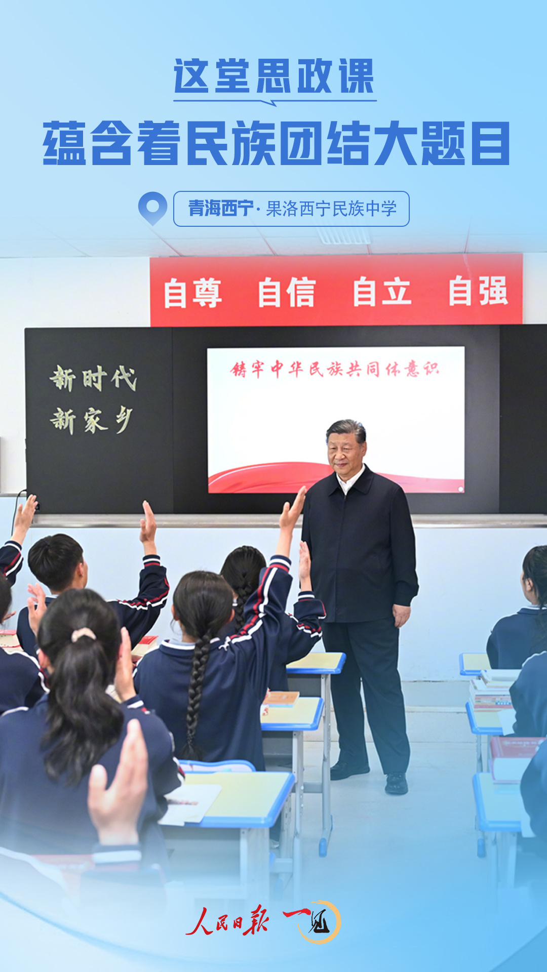 西寧城北,元朔山麓,藍(lán)天白云掩映下的果洛西寧民族中學(xué)綠意蔥蘢。6月18日,正在青海省西寧市考察的習(xí)近平總書記來到這里并觀摩了一堂思政課。總書記對(duì)思政課歷來很重視——這是落實(shí)立德樹人根本任務(wù)的關(guān)鍵課程,是培養(yǎng)社會(huì)主義建設(shè)者和接班人的重要保障。