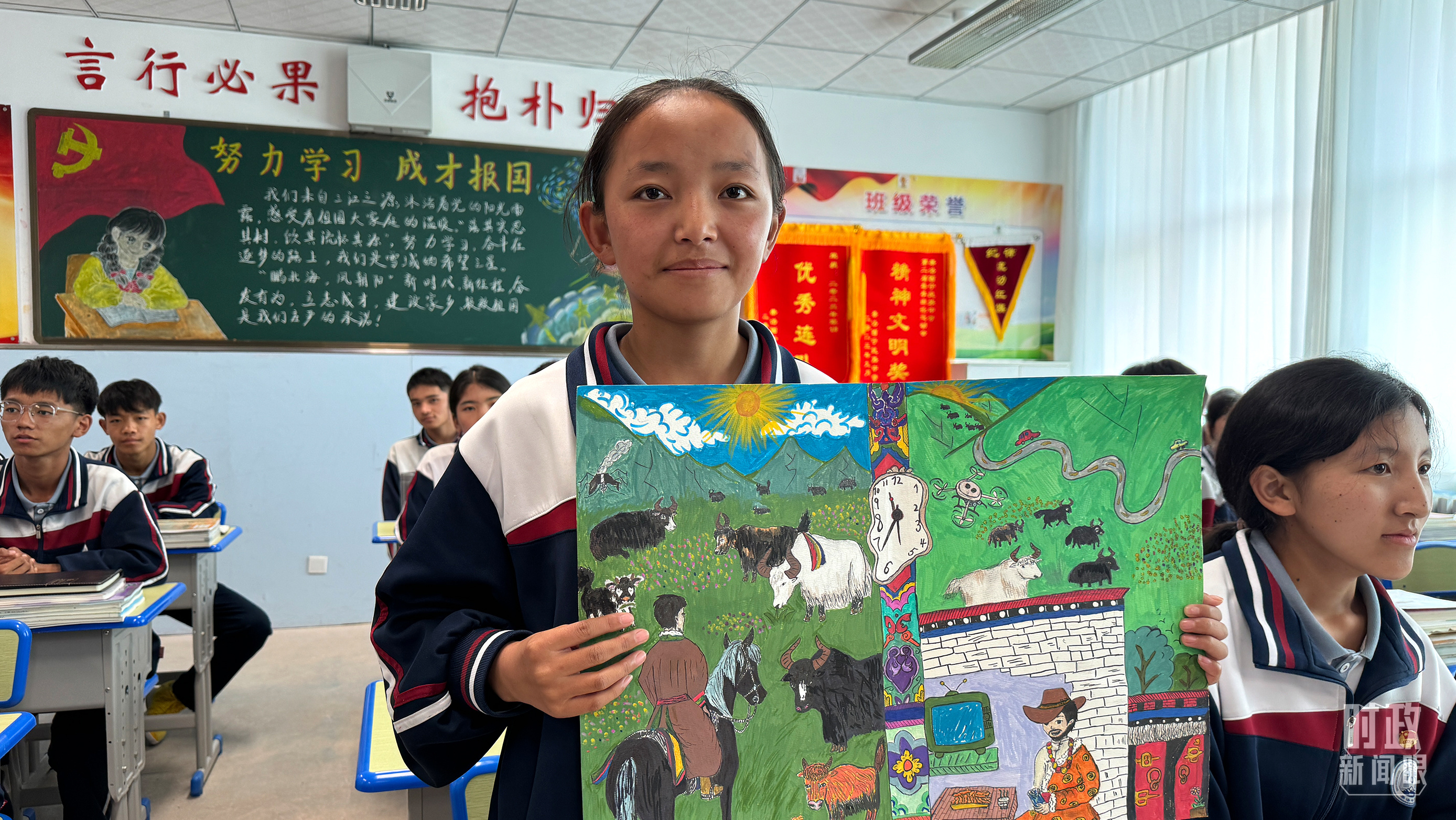 果洛西寧民族中學(xué)高一(1)班的“新時(shí)代、新家鄉(xiāng)”主題思政課。(總臺(tái)央視記者段德文拍攝)