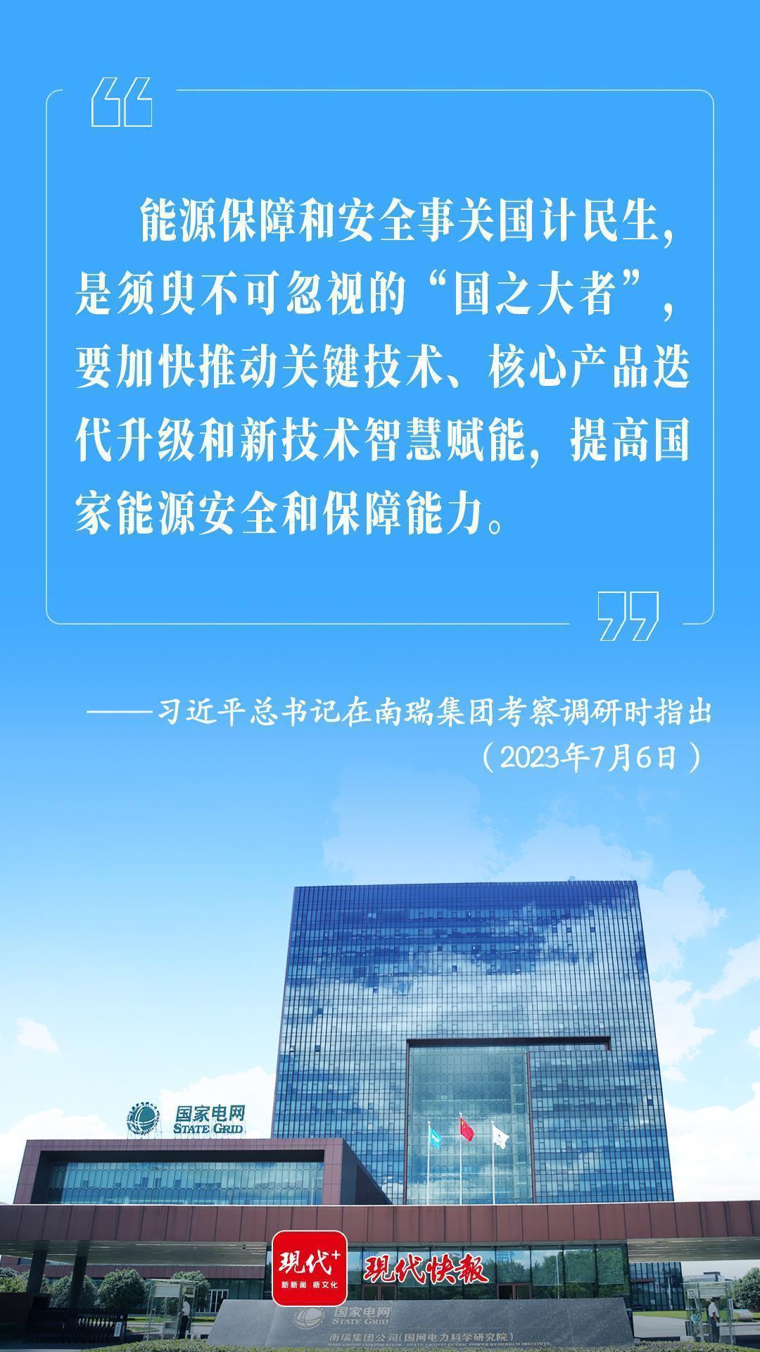 2023年7月6日,習(xí)近平總書記在江蘇南京考察南瑞集團(tuán)時(shí)指出,能源保障和安全事關(guān)國計(jì)民生,是須臾不可忽視的“國之大者”。要加快推動(dòng)關(guān)鍵技術(shù)、核心產(chǎn)品迭代升級(jí)和新技術(shù)智慧賦能,提高國家能源安全和保障能力。