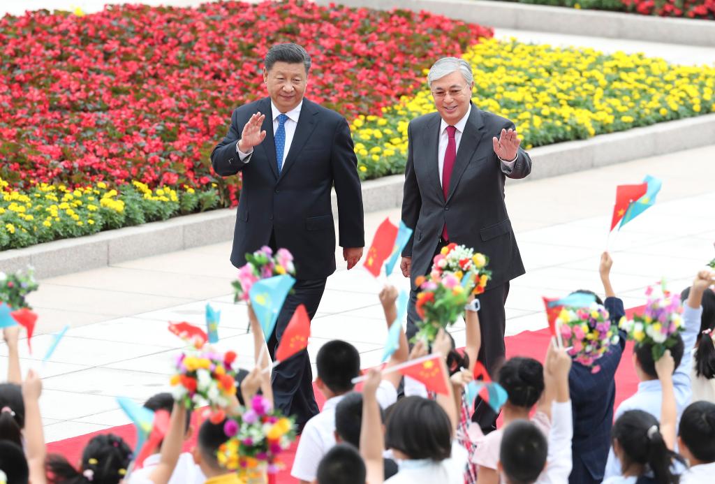 2019年9月11日,國家主席習(xí)近平在北京人民大會(huì)堂同哈薩克斯坦總統(tǒng)托卡耶夫舉行會(huì)談。這是會(huì)談前,習(xí)近平在人民大會(huì)堂東門外廣場為托卡耶夫舉行歡迎儀式。新華社記者 姚大偉 攝