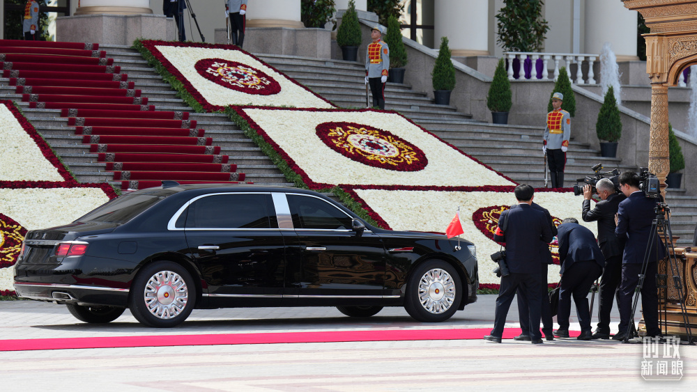 習(xí)主席乘坐的紅旗車抵達(dá)塔總統(tǒng)府。(總臺(tái)記者李晉拍攝)