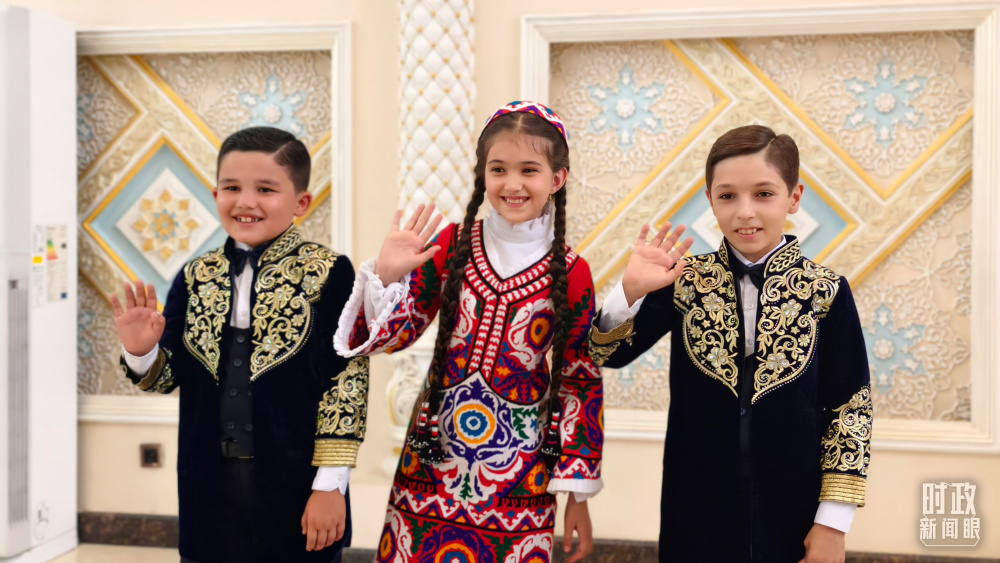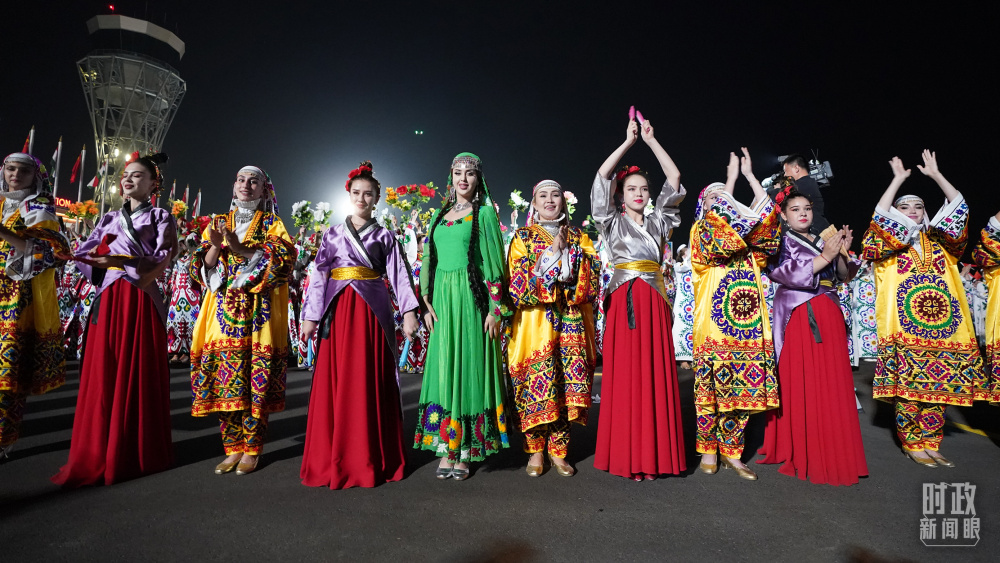 1500多名身著民族盛裝的塔吉克斯坦青年,表演富有濃郁特色的中塔歌舞,揮舞中塔兩國國旗,表達(dá)對(duì)中國領(lǐng)導(dǎo)人的熱烈歡迎。