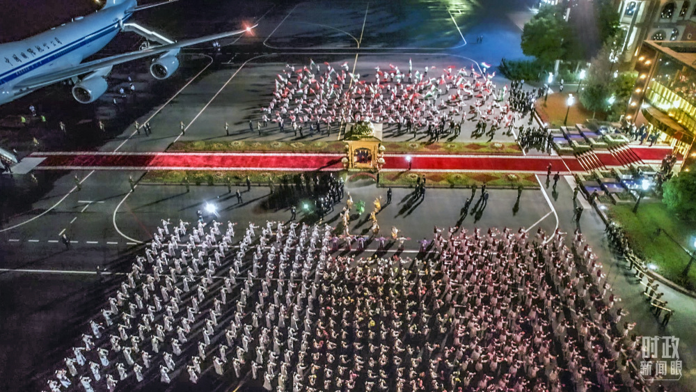 塔方在機(jī)場(chǎng)舉行的盛大迎賓儀式。(總臺(tái)央視記者邢彬)