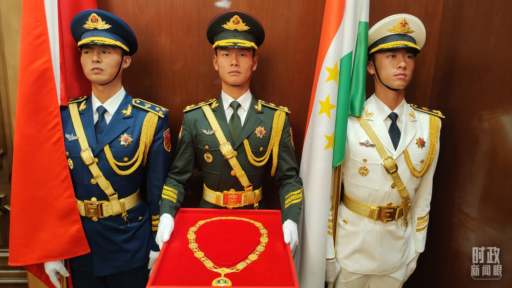 此訪期間,中塔友誼見證又一個(gè)“高光時(shí)刻”:習(xí)近平主席在杜尚別總統(tǒng)府舉行隆重授勛儀式,向拉赫蒙總統(tǒng)頒授中華人民共和國“友誼勛章”。