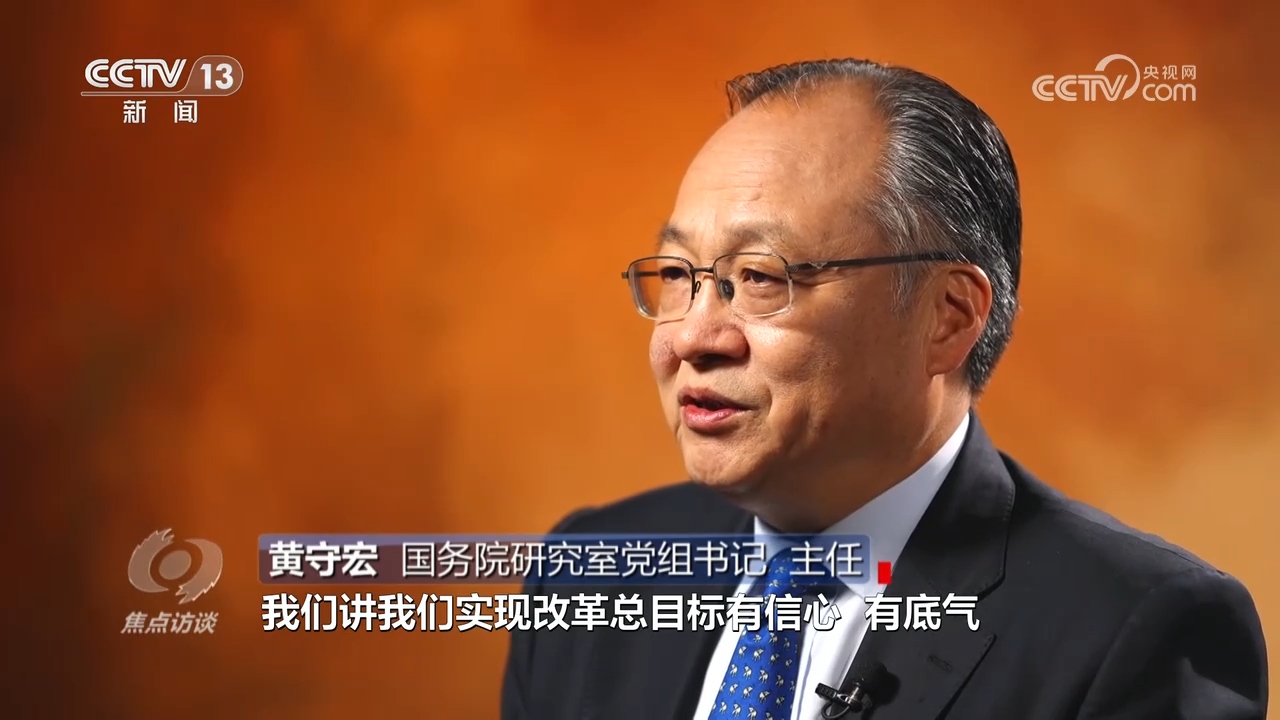 黃守宏:“在進(jìn)一步全面深化改革總目標(biāo)中,明確了到2035年的階段性改革目標(biāo),‘七個(gè)聚焦’的分領(lǐng)域改革目標(biāo),明確了到2029年完成《決定》提出的改革任務(wù)的要求,形成了在總目標(biāo)的統(tǒng)領(lǐng)之下,有總有分、總分結(jié)合、體系完備的目標(biāo)體系和推進(jìn)改革的時(shí)間表、路線圖、任務(wù)書(shū)?!?/p>