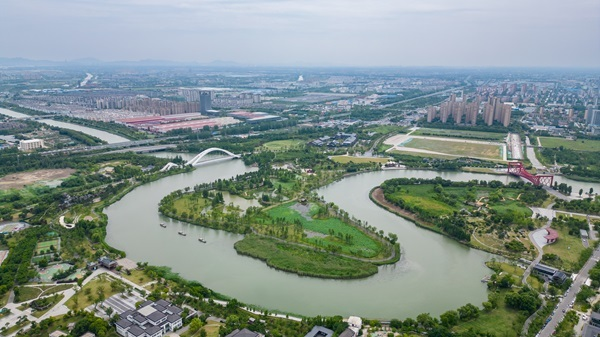 運(yùn)河三灣生態(tài)文化公園鳥(niǎo)瞰圖(央廣網(wǎng)記者 鄭楚豫 攝)
