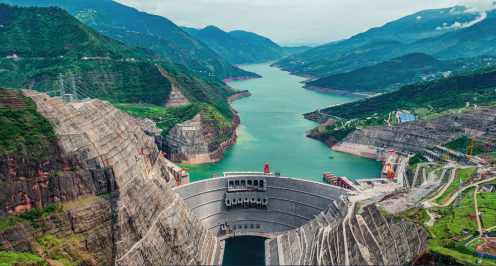 在云南省巧家縣和四川省寧南縣交界的金沙江峽谷中,上游而來(lái)的金沙江水被白鶴灘水電站大壩截住,“高峽出平湖”的景色蔚為壯觀。白鶴灘水電站年均發(fā)電量可達(dá)624億千瓦時(shí),是金沙江峽谷中的“綠色引擎”之一。